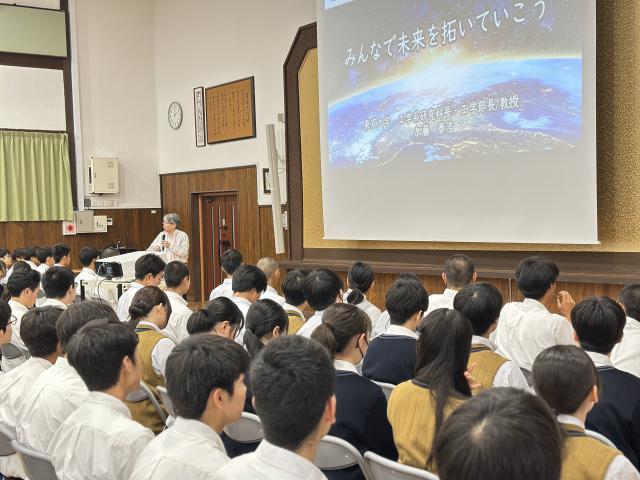 6月10日(火)に中3清秀コース,高1清秀高等部,高2,3清秀高等部理系,高1特進コース,高1スーパーVコース,高2,3スーパーVコース理系,高1~3医進サイエンスコースの生徒を対象に東京大学工学部教授である加藤先生の講演会を実施しました。