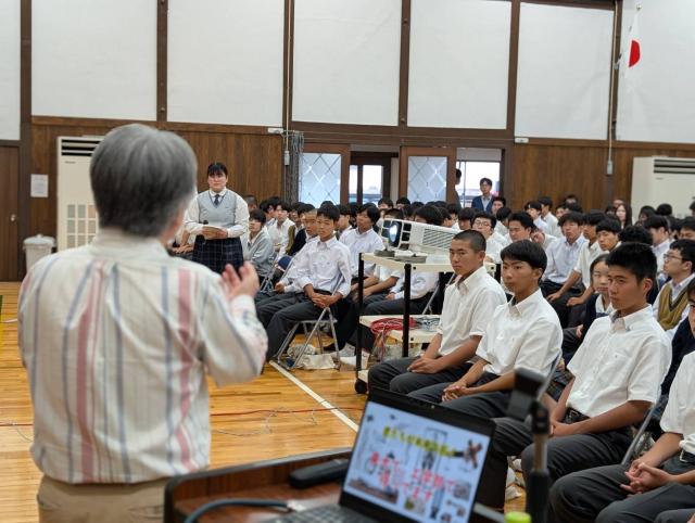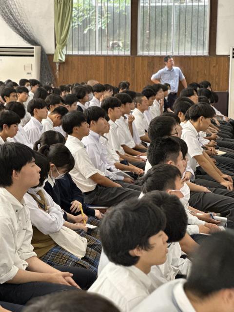 加藤先生のこれまでの人生,研究している新しい資源,東大教授や東大生の現状,東京大学の魅力など,普段触れることのできないたくさんの貴重なお話を伺うことができました。特に,2024年に南鳥島沖でとれた「マンガンノジュール」という新しい資源について触れられたときには生徒たちは非常に興味深く,熱心に話を聞いていました。