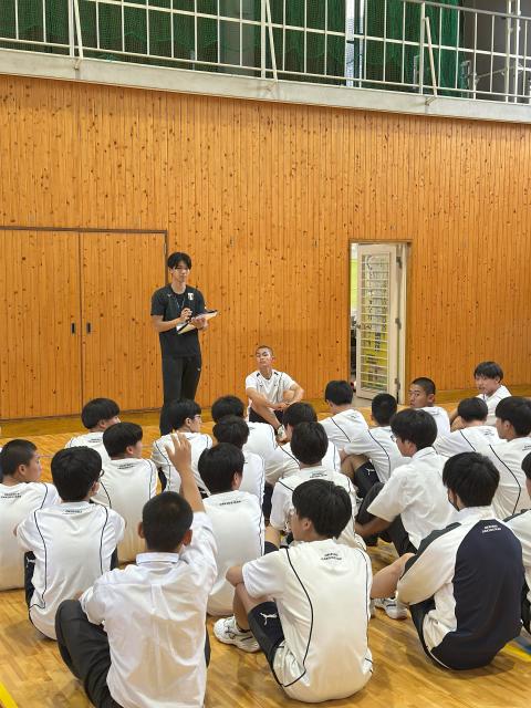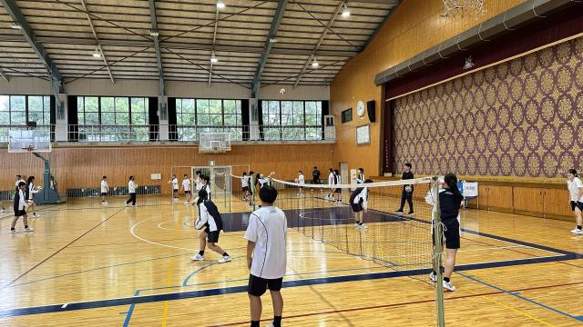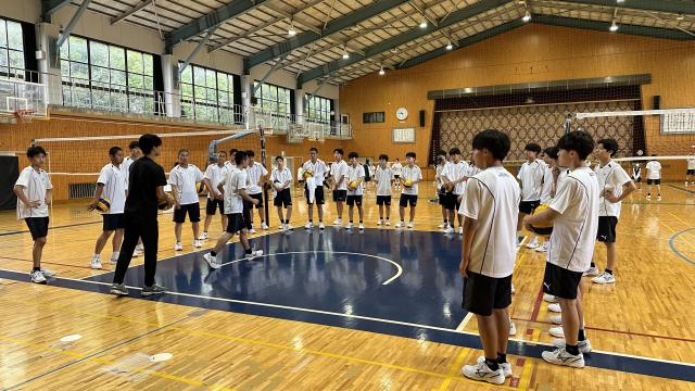 本日は体育の小池先生と栢原先生の研究授業。1年生にバレーボールを指導しました。