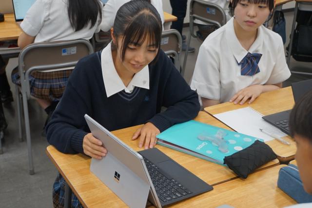 後半は実践編。生徒たちは実際にChatGPTを使い、「アンケートを作成する」という課題に挑戦。完成したアンケートは全体で共有され、表現の工夫や活用方法について意見を交わしました。