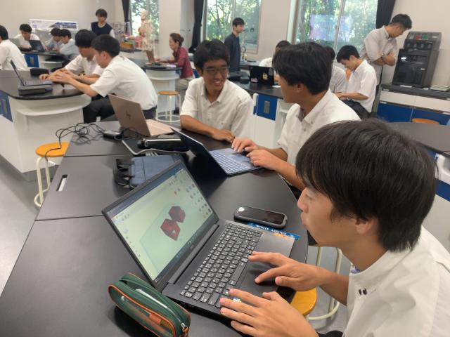 TinkerCADを用いた設計を実際に体験し、全員がオリジナルのネームタグを完成させました。さらに、課題研究に活用できるアイテム設計にも挑戦し、今後の探究活動において3Dプリンタがますます活躍することが期待されます。