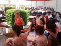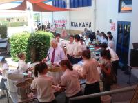 開催日時:2011年3月22日(水)ランチタイムイベント名: NZ and Japan Disaster Awareness Appeal(ニュージーランドと日本の災害に思いを寄せようというイベントです)参加人数:学内の4年生〜12年生までの学生および教職員のうち、希望者(350名ほどになりました!)イベント内容: 以前起こったニュージーランドの地震災害も含め、今回起こった日本史上最大の災害について、そこから派生して現在世界中に起こっている異常気象や災害について、思いを寄せ関心を持とうというイベントです。地震の起こった後、週末をはさんで月曜日朝、日本人留学生があつまり自分達にできることはないかと話し合いました。学芸館からの留学生、そして日本からの留学生全員が、遠く離れたここから「ふるさとの国日本」に何かできることはないかと考える真剣なまなざしが印象的でした。3月25日(金)で1学期が終了してしまうということから、学生達の関心の高いうちに募金活動を行おうというエネルギーが高まり、発起から1週間というスピード開催でした。日本のために自分達も何かしたい、という学生達の気持ちがなくては実現できませんでした。当日はNZからは災害地のイメージカラー「赤と黒」のリボンが手渡され、日本からは折り紙や350人分のカレーライスを学生が作り販売、現地にお住まいの日本人グループが和太鼓の演奏もしてくださり、カレーライスはほぼ完売という活気溢れるイベントになりました。カレーライスの作成には現地の学生数十名が手伝いに駆けつけてくれました。また、災害当日直後から学生の保護者の方、留学生のホストファミリーの方からも続々とお見舞いの言葉が届き、イベント当日には募金活動にも積極的に参加してくださいました。洪水やサイクロンの被害がまだ真新しいここクイーンズランドの人々が「他人事ではない」と心から日本を思ってくれていることを肌で感じることができた、心に残る1日でした。