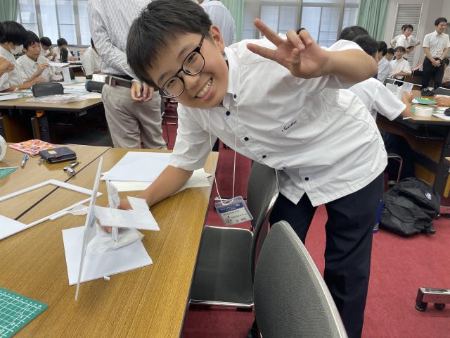 テンセグリティ構造を作る課題で、独創的な方法でいち早く完成させ、大学教授が写真撮影を申し出てくるほど、会場を沸かせた生徒たち。切れ味鋭い思考力とそれを表現する力が日々養われています!