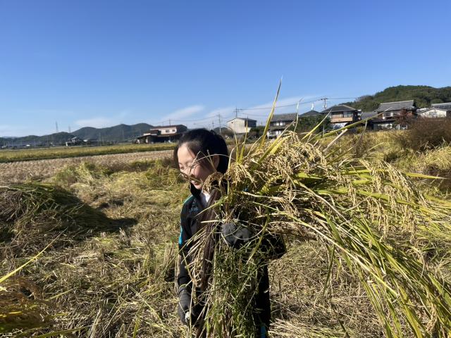最初は稲の感触や虫に叫び回っていたものの、最後の方は集中し黙々と作業に取り組んでいました。