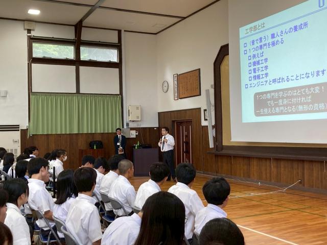 9月30日(火)岡山大学工学部・情報工学先進コース長の渡邊実教授にお越しいただき、約310名の高校1年生と希望の保護者に向けて、岡山大学の特徴や岡山大学工学部の学びについてご説明をいただきました。