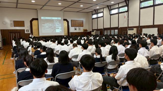 9月30日(火)岡山大学工学部・情報工学先進コース長の渡邊実教授にお越しいただき、約310名の高校1年生と希望の保護者に向けて、岡山大学の特徴や岡山大学工学部の学びについてご説明をいただきました。