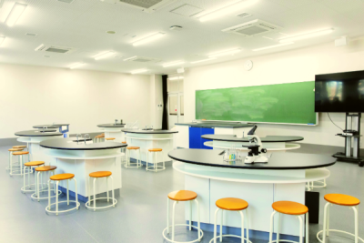 中学校専用の理科室です。自然科学部の活動やプログラミング授業等でも大活躍しています。生徒たちの五感を刺激し続ける空間です。