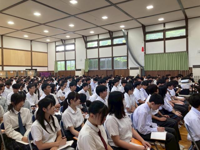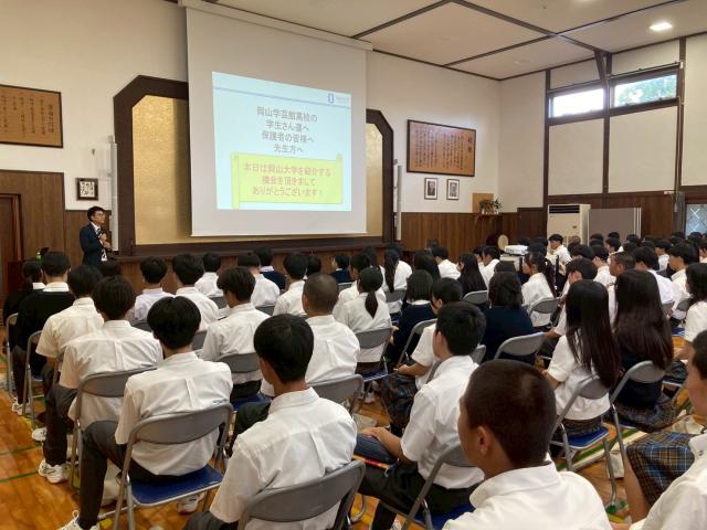 9月30日(火)岡山大学工学部・情報工学先進コース長の渡邊実教授にお越しいただき、約310名の高校1年生と希望の保護者に向けて、岡山大学の特徴や岡山大学工学部の学びについてご説明をいただきました。